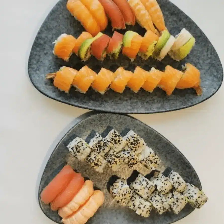 Toppede Maki: 8 stk. Rainbow, 8 stk. Laks Deluxe